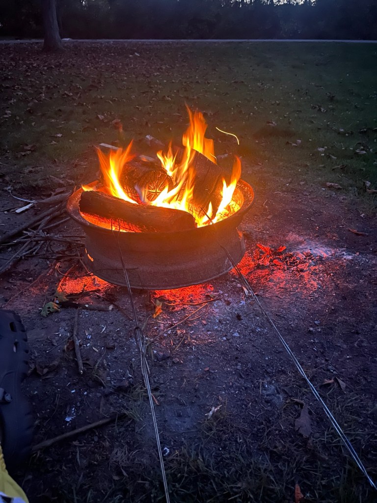 Finally, our campsite tonight. Maybe the best camping we’ve done on the whole trip. Big, spacious campsites. Fire pits. Easily collectible fire wood. Picnic tables. We even found a camp chair (which I am using right now!) and a bunch of firewood.